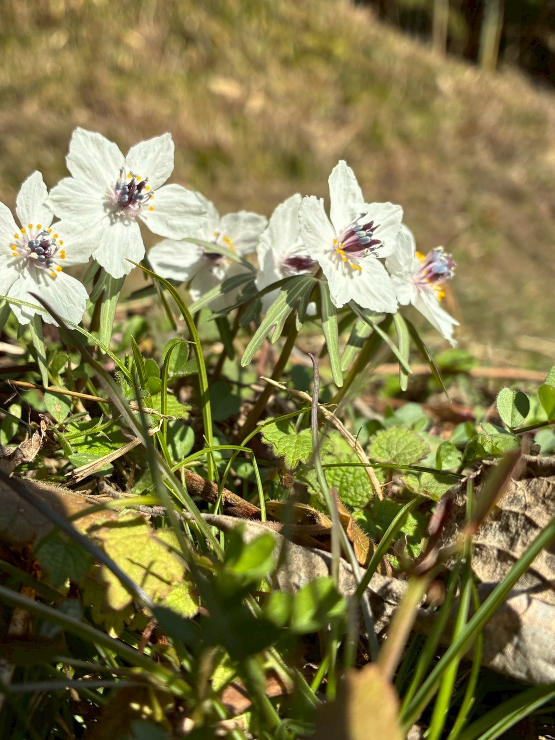 4番:山根さん宅西の自生地でも、小さなセリバオウレンの花があちこちで咲いて可愛さをアピールしてくれています。