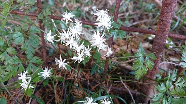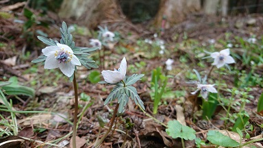 4番:山根さん宅西の自生地でも、小さなセリバオウレンの花があちこちで咲いて可愛さをアピールしてくれています。